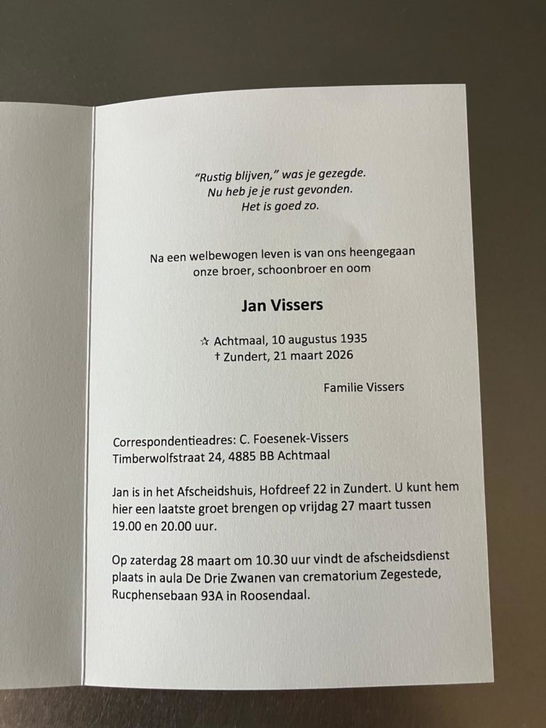 Jan Vissers overleden